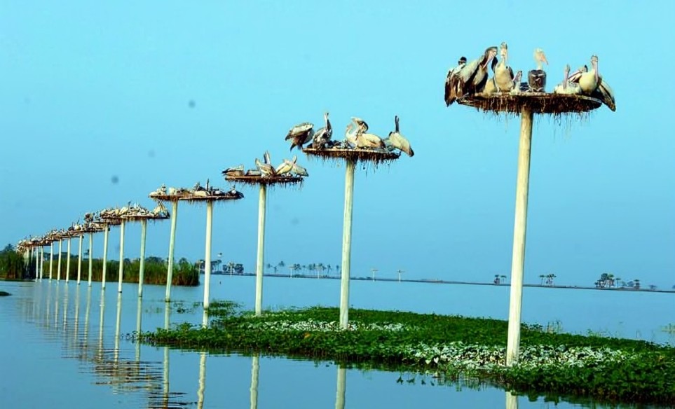 Located between the Krishna and Godavari deltas, one of India’s largest freshwater lakes and a Ramsar wetland, famed for migratory birds.